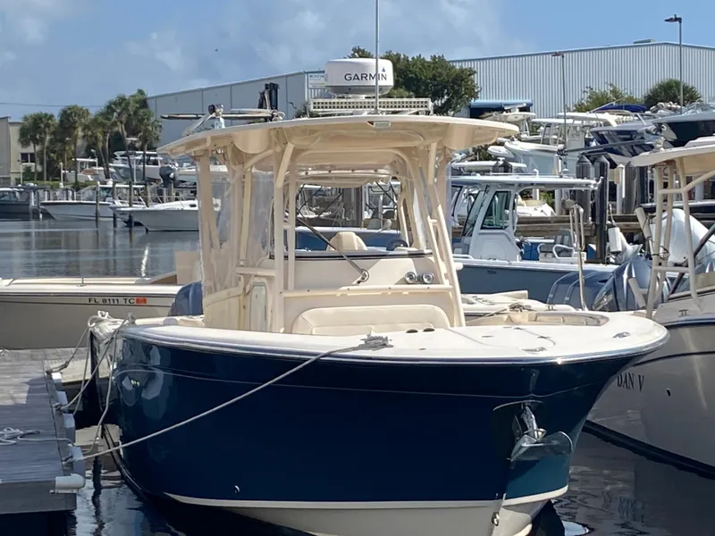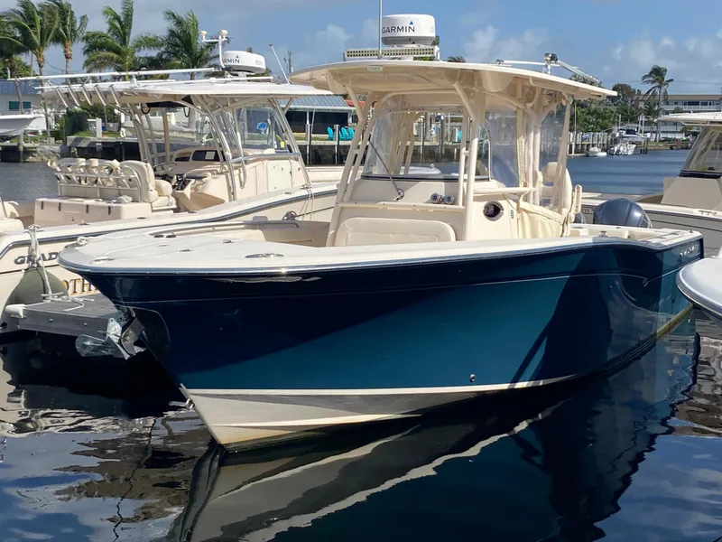 The pristine 2016 Grady-White Canyon 306 is being traded in for a brand new 306 here at our Marina. It shows in great overall condition and has been regularly detailed. Powered by twin, Yamaha F300 outboards with 884 hours of mostly trolling for Bluefin Tuna on them. Options and upgrades on this boat include: Harbor Blue painted hull color, Bow thruster, Fusion Stereo MB-NRX2001 & Speakers, raw-water live well, Dual Garmin GPSMAP 7612XSV Sonar 12" MFD's, thru hull 1 KW transducer, Garmin GMR18HD Radome Radar, Garmin Auto-Pilot, 2 Garmin VHFs radios a 115 & a 100 model, forward light bar & Taco GS-390 crank adjust outriggers.