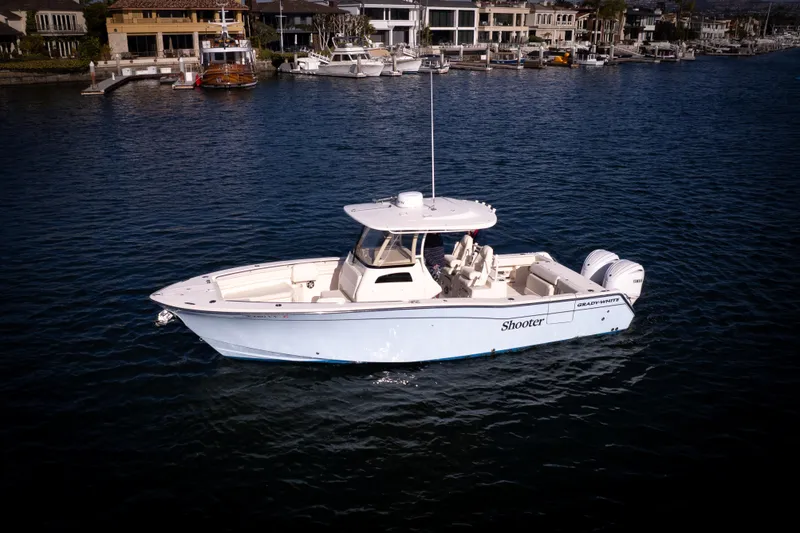A robust and versatile 30-foot Grady-White center console built for both fishing and cruising. This custom 2022 Canyon, was custom built by the owner with meticulous attention to detail, has only 85 engine hours on its custom-painted Yamaha 300hp engines-delivering fast cruising speeds with exceptional fuel economy. Outfitted with top-of-the-line Garmin electronics and plenty of outdoor seating, THE SHOOTER caters to serious anglers with its dual live wells while offering an expansive, inviting space to enjoy cruising.
