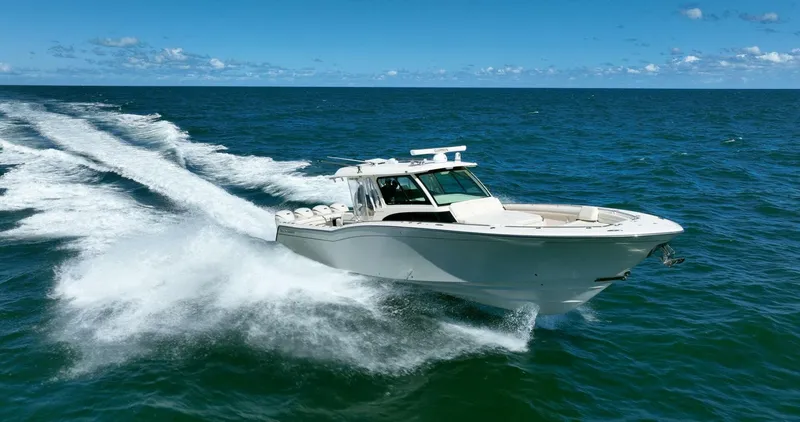 Introducing the stunning 2021 Grady-White Canyon 456, a remarkable center console boat that epitomizes performance and elegance. With an impressive overall length of 45.5 feet, this vessel boasts a robust fiberglass hull designed in the innovative Sea-V2(TM) shape, ensuring exceptional stability and handling on the water. Powered by four Yamaha XF425 outboard engines, each delivering 425 horsepower, this boat offers exhilarating speed and reliability, with only 210 hours of use. The outboard configuration enhances maneuverability, making it perfect for both leisurely cruises and adventurous outings. The Canyon 456 is equipped with essential features that elevate your boating experience. Its spacious design provides ample room for relaxation and enjoyment, making it an ideal choice for family outings or entertaining friends. Experience the perfect blend of luxury and performance with the Grady-White Canyon 456, where every journey becomes a memorable adventure. Includes Engine Warranty Until April 2028, SeaKeeper and FLIR Night Vision.