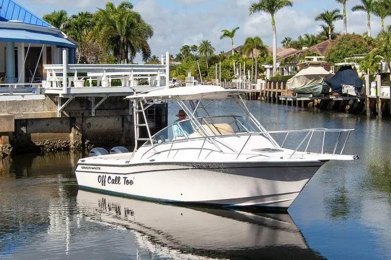 Introducing the Grady-White Express 265, a remarkable 2001 cruiser that combines performance and comfort. With an overall length of 26.42 feet, this vessel boasts a sleek fiberglass hull designed in a Deep Vee shape, ensuring stability and smooth navigation on the water. Powered by twin Yamaha outboard engines, each delivering 200 horsepower, the Express 265 promises an exhilarating experience with a total of 400 horsepower at your command. With only 200 hours of use, these engines are ready for your next adventure. The boat is equipped with essential features, making it a reliable choice for cruising. Its design allows for easy handling and maneuverability, perfect for both seasoned sailors and newcomers alike. The Grady-White Express 265 is an ideal vessel for those seeking a blend of performance and comfort on the open water. Experience the joy of boating with the Off Call Too!