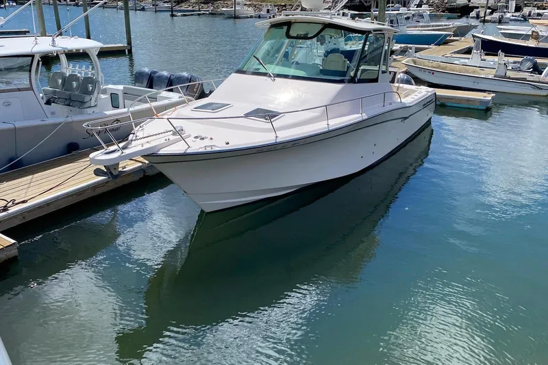 - Hardtop w/radio box, storage net, spreader lights, rod holders(6), outrigger plates, low profile acrylic hatch & drop, front and side curtains(navy or ivory)