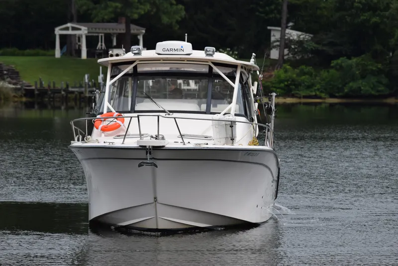 This Loaded one owner Grady Express 330 is rigged to fish. Every amenity an angler could wish for in a family friendly cruiser. Even a diesel generator to keep the kids comfortable on hot summer days powers both the cabin air and the helm air conditioning! Essentially the cabin area has never been used. The owner is blessed with excellent fishing minutes from the boathouse so she's been run locally for day trips only. Below deck areas look brand new, with perfect upholstery, bed never slept in, refrigerators never used, galley never used, head never used, a pristine live well and fishboxes, etc... But all items are exercised annually by the dealer or local mechanic to insure perfect operation. Flyweels on the Yamahas were replaced in May of 2024 under warranty. Whether you're looking for the perfect family cruiser, a weekender or a fishing machine, this boat can do it all.