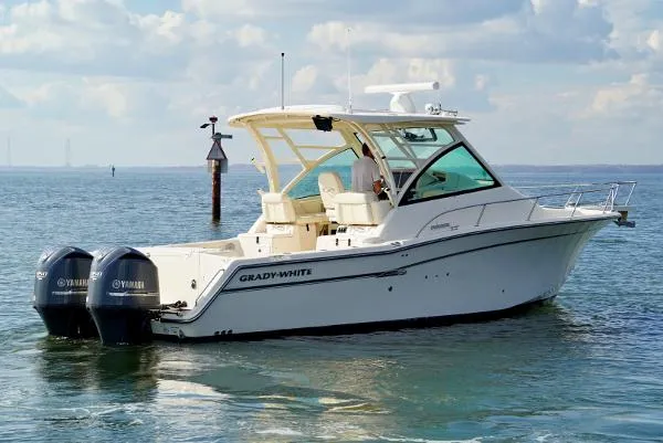 The Grady White Express 330 delivers on comfortable seating, an abundance of features, a luxurious cabin, and exceptional overall performance. This 33-foot fishing express cabin boat is also great for cruising with family and friends or enjoying a weekend away. Powered by twin Yamaha F350s with 740 hours and only 50 hours on the new flywheels.
