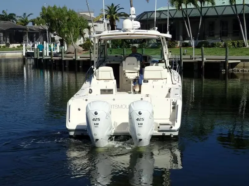 Powerful Performance: Equipped with twin outboard engines, the Express 330 delivers strong, efficient performance and good fuel economy.