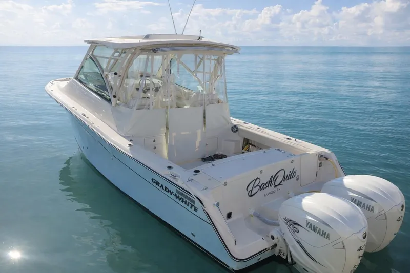 This **2021 Grady-White Express, *BASHQUITO***, has been impeccably maintained and thoughtfully upgraded, presenting in exceptional condition with a level of care that reflects true pride of ownership. Designed for effortless escapes to the Bahamas, she offers comfortable accommodations for 4-6 guests, a well-appointed galley, and a clean, spacious head-creating a refined onboard living experience. Equally capable as a sportfishing platform, she features rod storage, a 45-gallon livewell, and a 254-quart fish box, all in unused, like-new condition with no signs of wear. The factory grill option enhances onboard entertaining, while the absence of a cockpit side door contributes to superior hull integrity and a more solid offshore ride. The refrigerator operates flawlessly, with only a minor cosmetic note to the thermostat knob that does not impact performance. Turn-key and beautifully kept, *BASHQUITO* is a rare offering that seamlessly blends luxury cruising comfort with offshore capability.