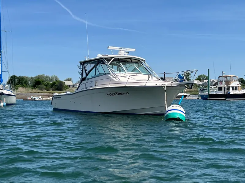 She has a large open cabin with additional aft cabin, full galley, dinette, enclosed head, hotwater. One of the best designed and comfortable boats in Grady's line up.