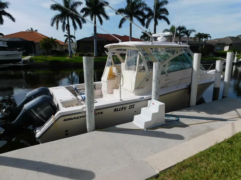 "Alley III" is a 2008 Grady-White 360 Express powered by a pair of original Yamaha F350 four strokes with just 546 hours. Just some of the factory and optional equipment to include Bow Thruster, Windlass, Battery Charger, Fully enclosed Head with Sink, Vanity and Shower, Full Galley with Refrigerator, Freezer, Stove, Microwave/Convection Oven and tons of Counter space and Storage, Full Isinglass Enclosure (Replaced 3 yrs ago), 4 new Batteries (Replaced 2 yrs ago), 8 KW Fischer Panda Generator, large Refrigerated Transom Fish Box, Cockpit Refrigerated smaller Fish Box, Sink and Live Well Console, Shore Power, Air Conditioning in Cabin and Helm (2 A/C Units) and much more.