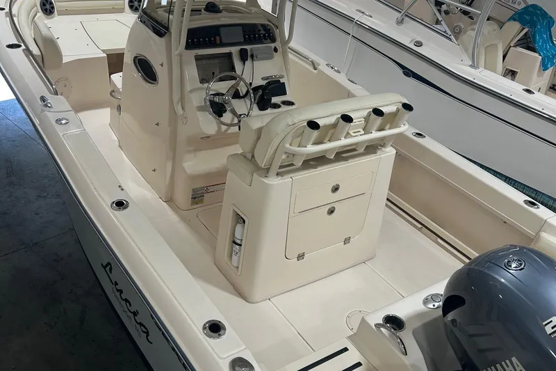 A popular and well maintained Grady White Fisherman 216 in a handsome coastal fog hull color. This is a one owner boat that has been maintained and serviced by Cataumet Boats since its purchase. Powered by a Yamaha F200XB with only 160 hours that has warranty coverage through February 24th, 2026. Some of the features of this boat include fresh and raw water washdowns, deluxe helm leaning post with integrated tackle storage, hard top and leaning post mounted rod holders, bow casting platform insert with a cushion, helm area canvas enclosure with wings, marine head with dockside pump-out, a removable bow table and color matched hardtop underside. This boat is also equipped with a extensive electronics package that includes a Garmin GPSMAP 8612XSV, Garmin 115 VHF radio, Garmin Fantom 18 radar, a B75 thru hull transducer and a fusion MS-RA770 stereo accompanied by fusion speakers throughout the boat. This is a great opportunity for someone trying to get out fishing in those coastal waters, or cruise around with the family. Give us a call today before it's gone!