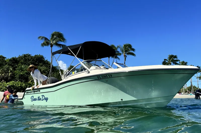 The family treated beautiful Grady like one of their own. So many good memories with so many more to come with the new owner. This is the largest looking 21 Dual console that you will ever find. This beauty is loaded. From Garmin 12'' GPS/ fish finder, Garmin VHF radio, Full cover, front and side curtains, Large S.S. Bimini top, bow table, ski pylon, Sea Glass Green hull color, Sliding port back rest lounge and cockpit shower.