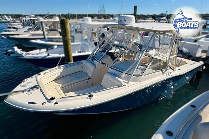 NEW BROKERAGE LISTING. This is a 2021 Grady-White Freedom 235 Dual Console powered by a Yamaha F300XCA Digital Engine. We Sold and have Serviced this boat since new and it has only 255 operating hours. Electronics include a Garmin 8612XSV MFD, Garmin B75M Thru Hull Transducer, Garmin Fantom 18 Radar, ICOM M424G VHF, Fusion Stereo. Options include Seaport Blue Gel Coat Hull Color, Hardtop with 4 Leg Rod Holders and Painted Frame, Ivory Hardtop Front and Side Curtains, Ivory Drop Wall Curtain, Ivory Bow Well Cover, Command Elite Helm Chair (STBD), Deluxe Companion Seat with Electric Lounge Seat Cushion, Bow Fiberglass Table, Anchor Windlass w/ Bow Roller, Marine Head with Macerator and Holding Tank, Raw Water Wash Down and more! This Dual Console is available now. We are open 6 days a week for your convenience, so call or stop by today. Don't miss your chance to own one of the most versatile Dual Consoles and sought-after family boats on the water.