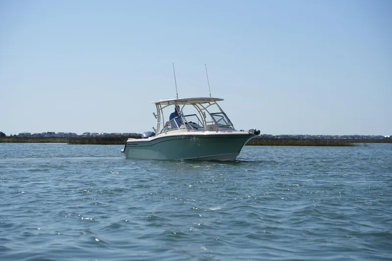 Grady-White’s Freedom 235 has so many “big boat” features along with exceptional quality, luxurious seating, and an oversized enclosed head. A Grady first: built-in swim platform extensions port and starboard, and stern auxiliary anchor storage. Every inch a Grady-White family fishing boat with safety, reliability and performance,