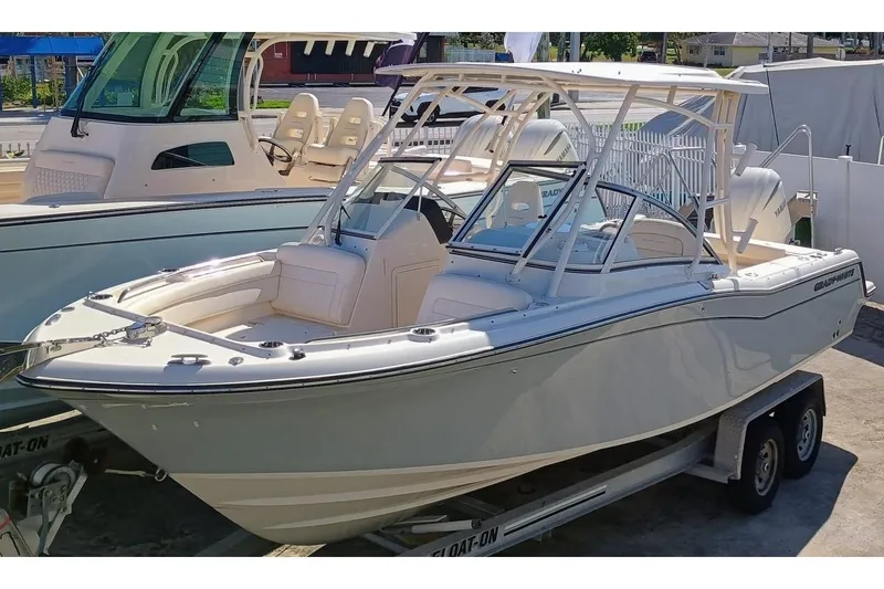 Introducing the stunning 2024 Grady-White Freedom 235, a remarkable dual console boat that embodies both elegance and performance. With an overall length of 25.58 feet, this new vessel is designed for adventure on the water. The Freedom 235 features a robust fiberglass hull with a Sea-V2(TM) shape, ensuring stability and smooth navigation. Powered by a reliable Yamaha outboard engine, this boat promises an exhilarating experience, perfect for cruising or fishing. The thoughtful design includes ample space for relaxation and enjoyment, making it ideal for family outings or gatherings with friends. With its modern aesthetics and advanced features, the Grady-White Freedom 235 is not just a boat; it's a gateway to unforgettable memories on the water. Experience the perfect blend of comfort and performance with this exceptional vessel, ready to elevate your boating adventures.