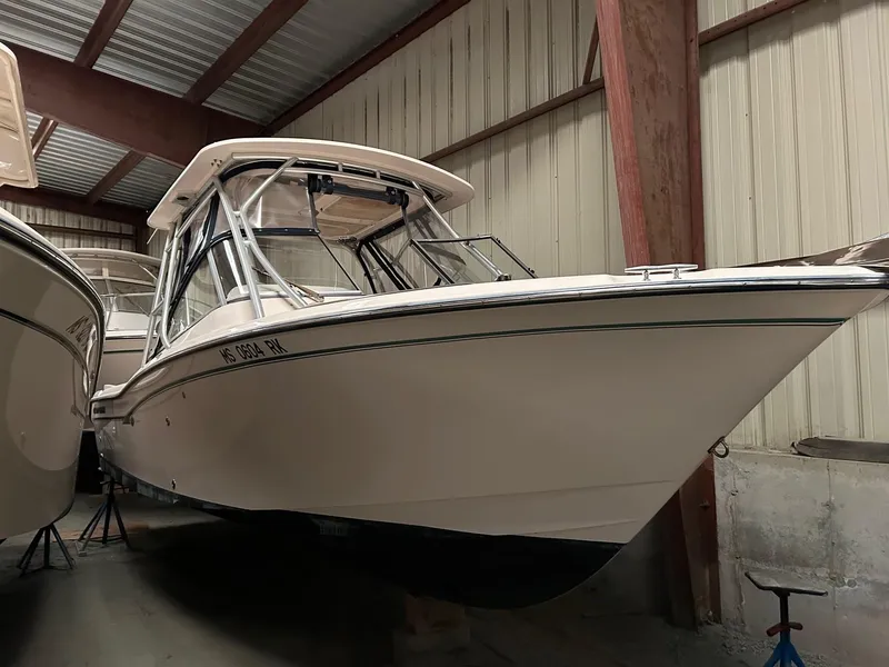 Very clean 2014 Grady White 255 Freedom powered by a Yamaha F350 with only 181 hours! Cataumet Boats has performed all of the service on this one owner boat since new. Always stored indoors every winter, this 255 has been pampered and comes loaded with all of the right equipment: Bow Thruster, Hardtop with full front and side curtains, Anchor Windlass, Porcelain marine head with holding tank, macerator and deck pump out, Fusion stereo system, freshwater shower, transom door and more. It is also equipped with a Garmin 7212 12" color GPS/Plotter fish finder and a Garmin VHF 100.