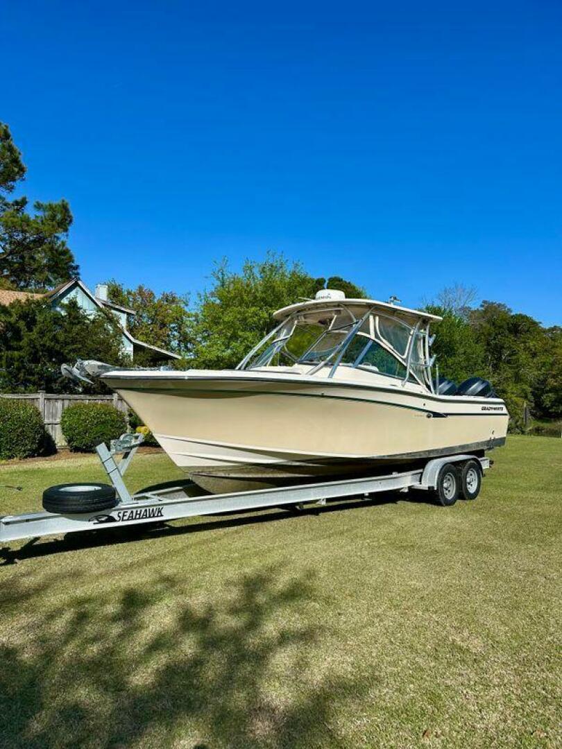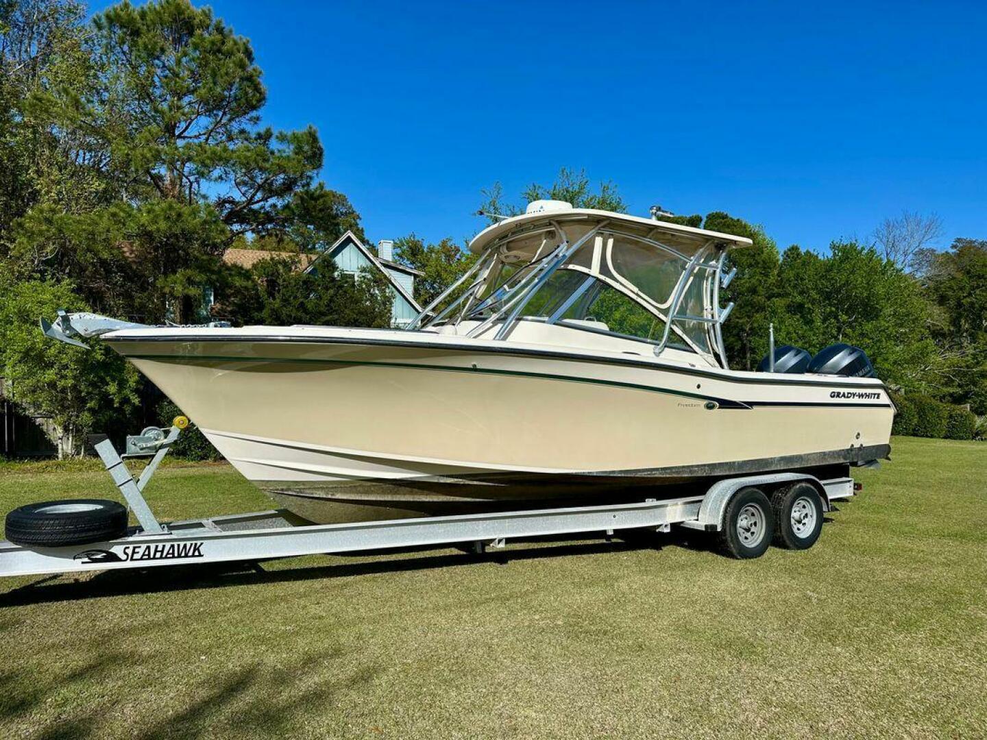 This 2014 Grady White 275 Freedom is ready for her next home, she's powered with twin 150 Yamahas that have 500 hours. Shes up to date on services, features Garmin electronics, tandem axel trailer, outriggers and a full cover. Contact Preston Frieze with Bluewater Yacht Sales today for more information (910) 473-2628.