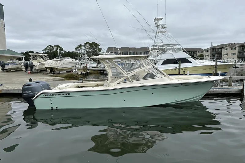 This Dry Stored One Owner Grady White 275 Freedom is in like NEW Condition with only 54 HOURS!!! For fishing, watersports, or cruising with family and friends, the Freedom 275 is the best dual console for every activity on your list! This 27-foot boat is spacious and chock-full of features that will enhance your time on the water. From the anchor windlass with remote switches at both the helm and windlass to the integrated swim ladder with transom door access, the 275 combines supreme functional features with Grady's uncompromising quality to deliver the most amazing boating experience ever, all on the unrivaled SeaV²® hull. Please See Optional Factory Equipment Listed Below: Twin Yamaha F200 DEC with (54 HOURS) Helm Bench Seat w/Deluxe Bar, Sink & Storage Underside Top Gel Color Ivory Bow Shade Ivory Bow Cover Ivory Hardtop Drop Curtain Ivory Hardtop Front & Side Curtains Whole Hull Gel Color Gel Coat- Sea Glass Green Ski Pylon Underwater Lights Sun Platform Insert w/Cushion Yamaha Factory Warranty Good Until: March 19, 2029!!!