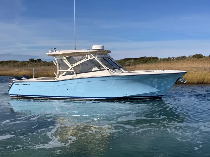 2016 Grady White 307 Freedom with twin Yamaha F300 Engines with 208 hours. New exterior paint job in celestial blue. Power assist steering, bow thruster, outriggers, ski pylon, sunshade aft, sun platform with cushion. New forward and side curtains in 2023. Garmin 7610 displays with GMR 24XHD Radar. ICOM VHF with command mic and fusion stereo. Boat has been commissioned with fresh bottom paint. Ready to go for the summer!