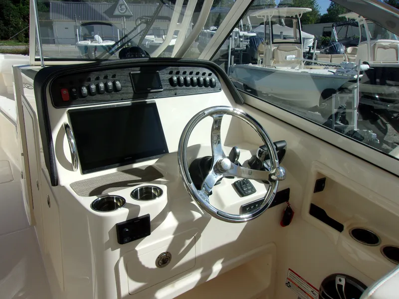 2024 Grady White 307 Freedom with Yamaha Dual F-300 XSB and AmeraTrail tri-axle trailer! This boat features a factory installed bow cover, aft curtain ski pylon and comes with a Garmin 1643 xsv! 100% freshwater boat with only 13 hours!