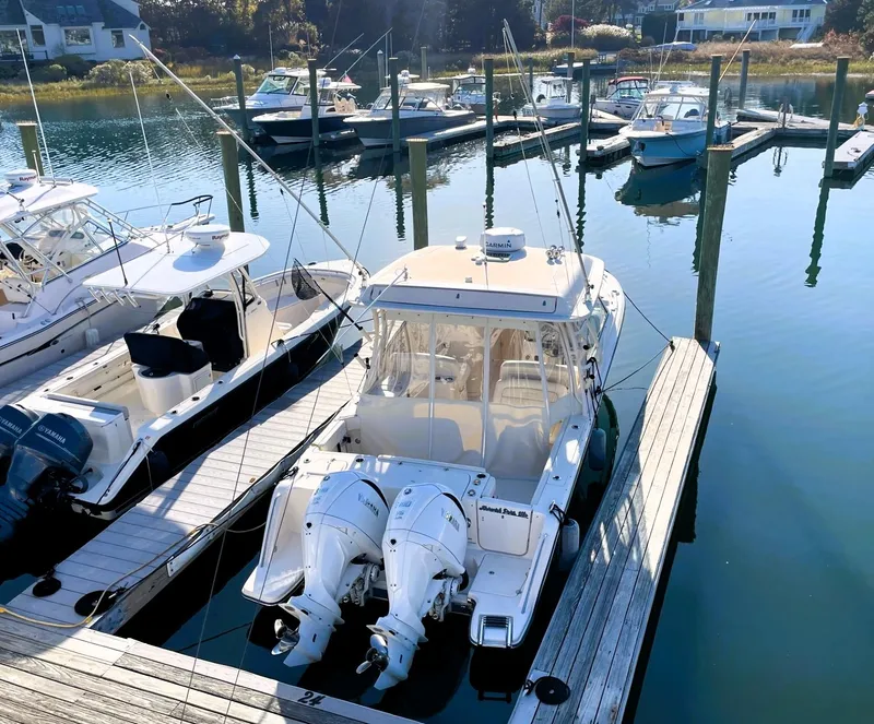 Loaded 2021 Grady-White Freedom 325 w/white Yamaha F300 Helm Master EX Full Maneuverability, Bow Thruster & Seaport Blue hull. The motors have 102 hrs. This boat has every option available from the factory including Seaport Blue (gel coat), Air conditioning in consoles and at the helm, Diesel Generator (4hrs.), Wet Bar w/sink Fridge, Grill, and storage, Hot Water Heater, Outriggers, Ski Pylon, Deluxe Stereo, Underwater Lights, Clear 2 Seaside curtains, Underside of Hardtop Color Match, Bow Cover, Hardtop Drop Curtain, Hardtop Aft Curtain,