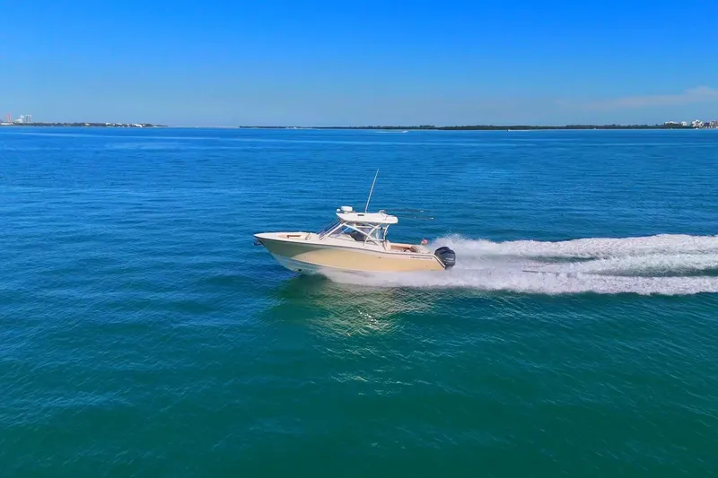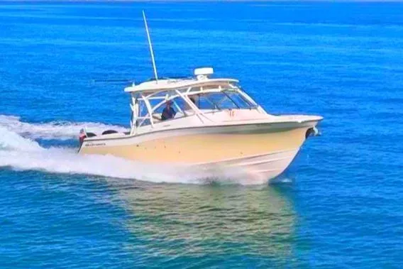 Specifications:  • Make: Grady-White  • Model: 335 Freedom  • Year: 2013  • Length: 33’ 6”  • Beam: 11’ 7”   • Draft: 26” (without engines)  • Weight: ~ 11,900 lbs (dry)   • Fuel Capacity: 293 gallons     Engines:   • Engine Type: Twin Yamaha F350 4-Stroke Outboards   • Engine Hours: 513hrs  • Fuel Type: Gasoline     Features:   • Spacious dual-console layout with ample seating   • Electric sun shades, hardtop with outriggers   • Hardtop with integrated rod holders and storage   • 4kw Fisher Panda generator - diesel  • Bow thruster     • Bennett trim tabs   • Underwater lights  • Wide-open cockpit with insulated fish boxes and livewell   • Electric grill and wet bar  • Deluxe helm seating with electronic adjustments   • Private head compartment with sink and shower  • Foldaway transom seating for added versatility  • Swim platform with integrated ladder  • Garmin electronics package  • Fusion stereo system with speakers throughout  • Air conditioning in helm area and cabin     SEND AN OFFER!!