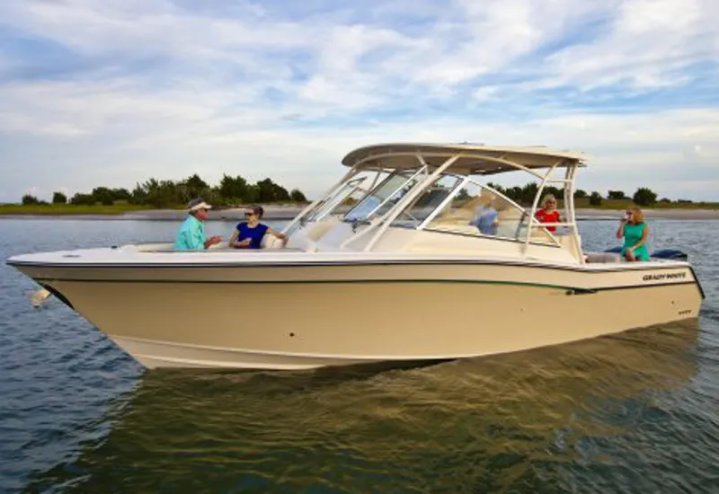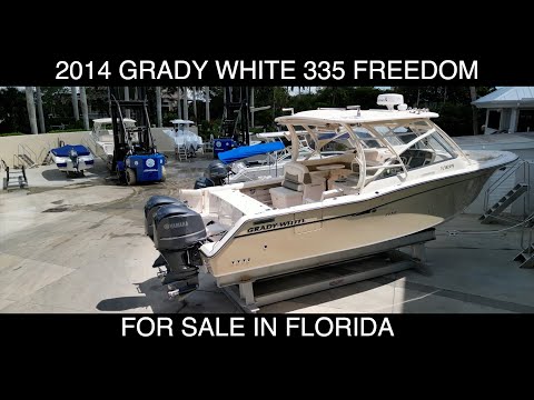 Introducing the 2014 Grady-White Freedom 335, a remarkable saltwater fishing vessel that combines performance and comfort. With an overall length of 37 feet, this boat is designed for serious anglers and leisure seekers alike. Its robust fiberglass hull features the innovative Sea-V2™ shape, ensuring stability and smooth navigation in various water conditions. Powered by twin Yamaha F350 outboard engines, each delivering an impressive 350 horsepower, this boat promises exhilarating speed and reliability, with only 660 hours of use. The inclusion of joystick control enhances maneuverability, making docking and navigation effortless. The Freedom 335 also offers practical accommodations, featuring a well-appointed head for convenience. This vessel is perfect for extended fishing trips or leisurely outings, providing ample space and comfort for all aboard. Experience the thrill of the open water with this exceptional Grady-White model, where every detail is crafted for an unforgettable adventure.