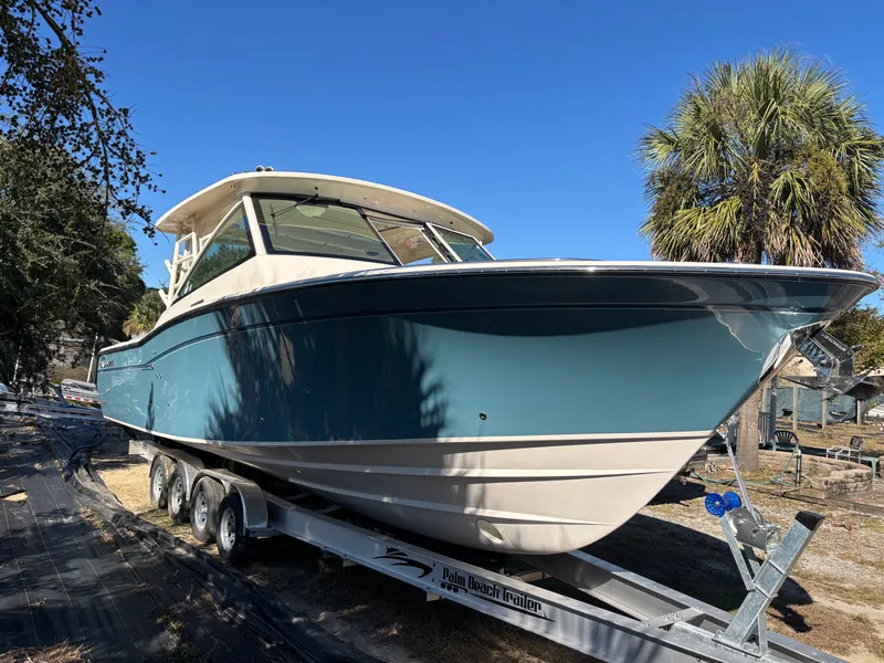 ADDITIONAL NOTABLE EQUIPMENT - Bow Thruster w/ Bow Joystick Control. - Anchor Windlass w/ Foot Controls w/ Wireless Helm Remote. - (2) Domestic A/C Units (16,000 and 8,000 BTU) - Wet Bar and Outdoor Grill Station w/ Electric Grill. - Isotherm Refrigerator w/ Freezer - Canvas, Bow and Aft Cover, AV2 Ivory. - Portside Salon Resting Cabin w/ TV. - Starboard Side Head w/ Vacuum Flush Toilet. - Aft Underwater Lights. - Trailer Not Included w/ Boat. - Trades are Welcome. - We can help with Transportation. - We can help with Financing Options and Share Contacts.