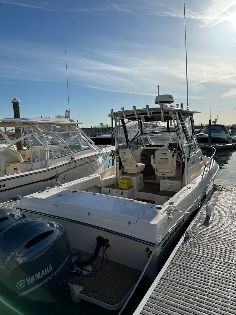 Beyond a rare model, this is the the one to buy, CLEAN. Owned by a talented marine technician who is extreme in maintenance, light on use. Professionally repowered by Al Grover's in 2024 with NEW twin Yamaha F150 XCA, 167 hours, always fresh water flushed, WARRANTY to March 29, 2029. Old engines were perfect but he likes new engines. 2025 installed NEW Sionyx night vision camera, NEW coaming bolsters and ALL seats by Linhart. 2024 installed NEW Garmin GPS, NEW Ray dual transducers, first time bottom painted. ICOM M330 vhf. 2022 NEW Seadek flooring. 2017 NEW Ray Axiom Pro 12 GPS/Sonar and radar. CLEAN.