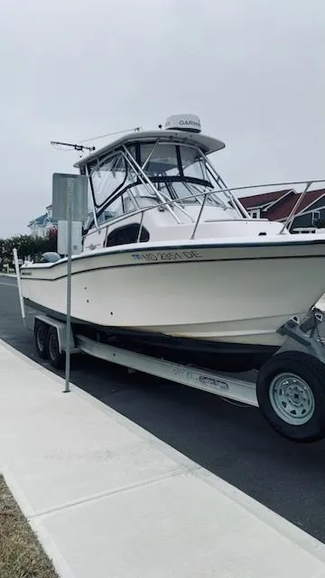 THIS VESSEL HAS HAD TWO MAJOR UPGRADES : 2018 / NEW YAMAHA POWER ; 200HP 4 STROKES WITH APPROX 310 HOURS . NEW GARMIN TO INCLUDE PLOTTER , SONAR ,RADAR . FUSION AUDIO SYSTEM ...................................The 2004 Grady-White 270 Islander is a versatile walkaround boat featuring a 27-foot length, 8.5-foot beam, and a fiberglass SeaV² hull designed for coastal and offshore use. Key features include a spacious cockpit with an integrated swim platform, fold-away rear seat, 34-gallon livewell, insulated fish box, and an enclosed head with shower and galley below deck. Popular options included a hardtop, anchor windlass, and bow pulpit, while standard equipment featured premium hardware, raw-water washdown, trim tabs, and rod holders