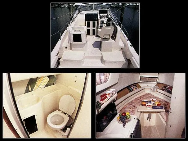 At 4200 pounds without engines or fuel, the Grady-White Islander 268 is a big, trailerable, foam-filled, self-bailing bruiser with all the amenities of a cruiser for comfortable weekend excursions. With a 28-inch interior cockpit depth, a full transom and non-skid walkaround, safety is assured. Hardcore offshore anglers will appreciate features like horizontal rod racks and cockpit toe rails, oversized through-bolted hardware and loads of tackle storage. The helm area has a helm seat and a lockable electronics box. Portside there's a bench which converts to a single forward-facing seat for rough water passages. Under both the bench and helm seats are large and lockable dry storage areas. In the 57-square-foot aft cockpit, there are more than 300 quarts of insulated boxes with overboard drains. The starboard box has a 186-quart capacity and the portside box is divided into a smaller one for soft drinks and a larger one for the catch. Custom cushions add extra seating on top of the raised fish boxes. In the stern area, there is a molded-in bench seat, a drop-in box that can be plumbed as a livewell, and a transom door that leads to the swim platform. That platform has a standard stainless steel ladder molded flush with the platform surface when folded away. The cabin has forward V-berths, a head enclosure and a full galley complete with butane stove and refrigerator. A table between the two berths lowers to form a double berth and stows conveniently in a special compartment in the underberth storage area. A pressurized water system with sinks at the galley and in the head has a capacity of 32 gallon. Like most other Grady-Whites, the 268 is a three-piece boat consisting of a foam-filled hull, an inner liner fiberglassed to the tops of the stringer system, and a deck which is through-bolted to the inner liner. This three-piece construction allows the flexibility to build in features like fish boxes and electronics housings. The Islander 268 has a standard fuel tank of 150 gallons, while an optional auxiliary tank raises total fuel capacity to 206 gallons for extended fishing or cruising excursions. The Islander can be powered by either single or dual outboards without transom modification. Single outboards with a shaft length of 30 inches can be mounted in the center, or dual outboards with 25-inch shafts can be mounted on 28-inch centers. Hydraulic trim tabs and hydraulic steering are standard.