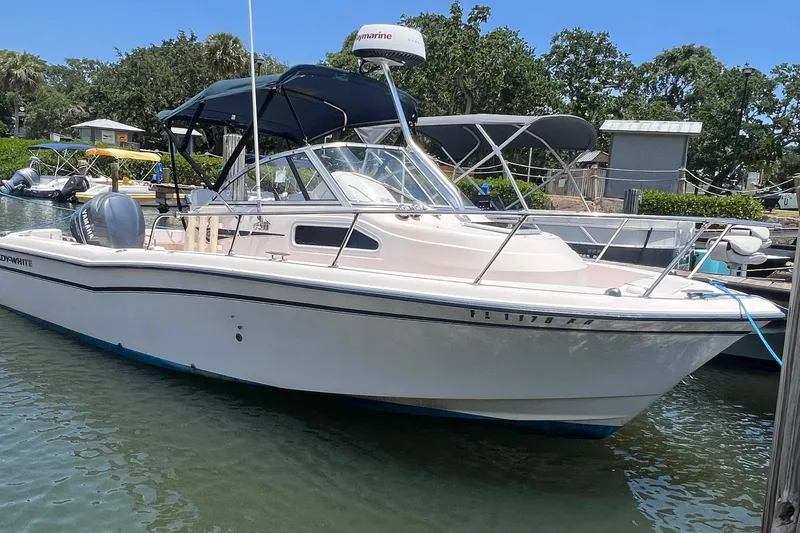 Introducing the Grady-White Seafarer 226 SHE PROMISED, a remarkable saltwater fishing vessel from 2005, measuring an impressive 22 feet in overall length. This used boat is crafted from durable fiberglass and features the innovative Sea-V2(TM) hull shape, ensuring a smooth and stable ride on the water. Powered by a robust 250 hp Yamaha outboard engine, it boasts 2,146 hours of reliable performance, perfect for adventurous fishing trips. The boat accommodates up to six passengers comfortably, making it ideal for family outings or fishing expeditions with friends. With one cabin and one head, it provides essential amenities for extended trips. The vessel is equipped with a stainless steel 3-blade propeller, enhancing its efficiency and maneuverability. The Grady-White Seafarer 226, named "SHE PROMISED," is a fantastic choice for those seeking a dependable and enjoyable boating experience.