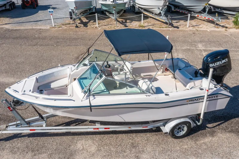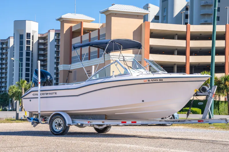 Here is a nice classic dual console, a 1999 Grady-White 192 Tournament powered by a 2023 Suzuki 175. Only 171 hours on the engine, which has the silky-smooth fly-by-wire digital controls. Great riding boat for its size...tons of cockpit space, too. The port side seat folds down to make a bed, which is a nice feature. This Grady is right at home inshore or at the sandbar and plenty seaworthy...she's more than capable offshore on nicer days. Newer Garmin EchoMap 74SV GPS, Suzuki SMG4 color gauge display, Infinity stereo, and comfy forward seating. Trailer included!