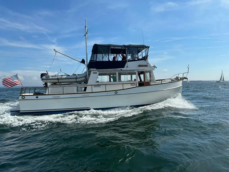 This 1976 Grand Banks 42 Classic is powered by the efficient John Deere 6 cylinder diesel engines. She had been well cared for and updated over the years. The generator was replaced, a new refrigerator installed, updated electronics and the teak decks were removed. She is a nice example of these popular cruisers. Located in Sales Tax free North Kingstown, RI she is ready to cruise with new owners.