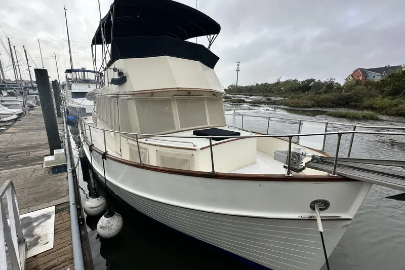 Featuring a spacious salon, fully equipped galley, and two comfortable staterooms, she's perfectly suited for extended coastal adventures or relaxed liveaboard living. Twin diesel engines provide reliable power, while wide side decks and a flybridge helm offer excellent visibility and ease of handling.
