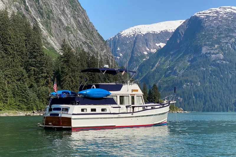 Rhumba Girl is a stunning 1995 Grand Banks 42 Motoryacht that combines elegance with performance. With an overall length of 48.5 feet, this trawler boasts a robust fiberglass hull, ensuring durability and stability on the water. Powered by twin Cummins 6BT 5.9-M diesel engines, each delivering 210 horsepower, she offers a cruising speed of 9 knots and a maximum hull speed of 13 knots, making it perfect for leisurely explorations. Inside she features two comfortable cabins, two heads and a large down galley, providing ample space for rest & relaxation. The upper bridge is spacious with a bimini top and a very rare and desireable radar arch. (No mast). The Lofrans electric windlass enhances convenience during anchoring and the electric SeaWise davit system makes launching the dingy very quick & easy. With a remarkable range of 700 miles, Rhumba Girl is ideal for extended voyages. This beauty, with only 3120 hours on each engine, is ready to take you on unforgettable adventures, blending classic charm with modern functionality. She is housed in an LLC and would be a ready & welcome addition to our charter fleet. Experience the open waters in style and comfort aboard this very well maintaned Grand Banks 42 Motoryacht.