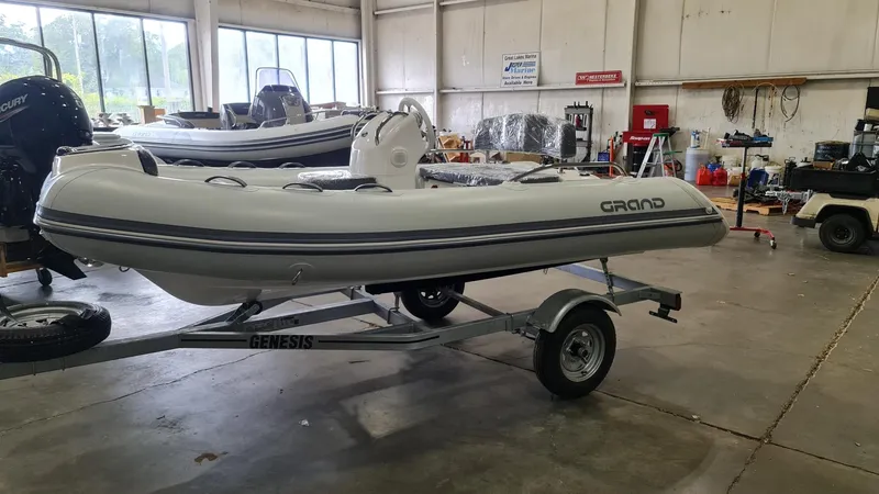The Grand G380 model is a versatile RIB. Due to her light weight, she can be used as a tender to go ashore and explore in style. She will also meet the needs of any captain looking to feed their need for High Performance. The G380 will hit top speeds of 42+ mph and can pull a skier, or tuber. Her fiberglass step ends are not only stylish, but they also act as a trim tab allowing these RIBs to outperform their competition with less horsepower and very little bow rise upon take off. She is an absolute joy to operate and will bring a smile to your face when flying across the water.