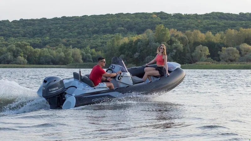 This model has a proven High Step Hull design that ensures excellent maneuverability combined with dynamic stability and impressive speed. Safety handrails are fitted and standard on the port and starboard side of the very well designed seating area and steering console. Stainless Steel and powder coated bow rails are also available as an option.