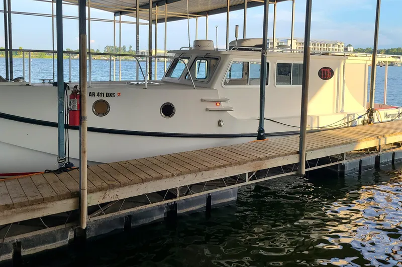 The saloon provides additional guest accommodations, and the covered cockpit can be fitted with a full weather enclosure if desired. Incredibly shallow draft enables access to cruising destinations not possible in other boats and the TT35 can be ramp-launched, land-stored and moved overland cost-effectively by trailer. Perhaps most notable is her extreme efficiency: nearly 6 MPG at displacement speeds (1000 mile range), 3 MPG at low planing speeds.
