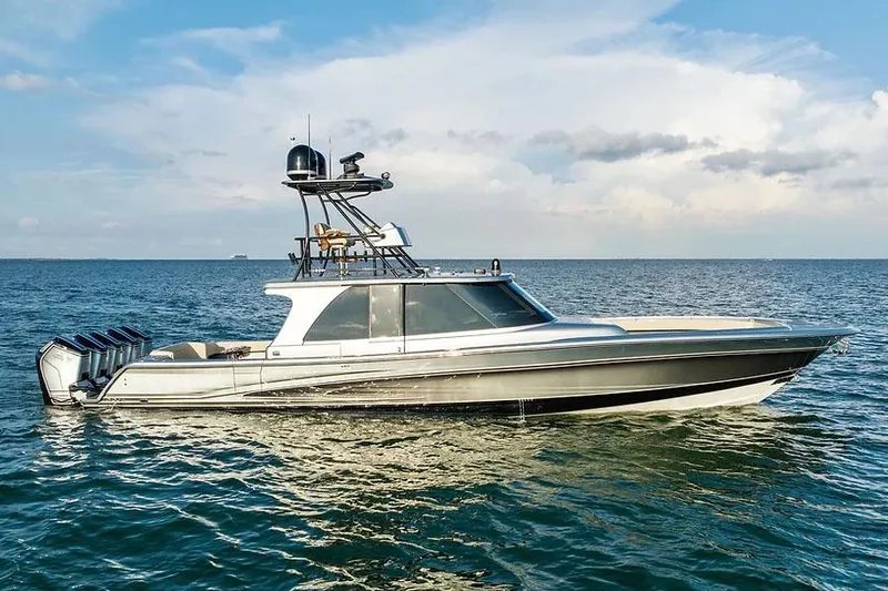The Gulf Crosser 52 is arguably one of the most recognizable boats on the market and has created an entirely new category by combining the benefits of a traditional center console boat with the protection of an enclosed boat. It's a serious fishing machine but with a level of comfort that makes the boat ideal for many other uses, too. The most distinguishing feature of the 52 is the air-conditioned upper salon with a solid glass enclosure surrounding the helm and passenger seating area. This climate-controlled haven offers panoramic views and allows you to operate the boat in any type of weather conditions that you might encounter during your outings on the water. Gone are the days of hesitating to enjoy a lunch or dinner cruise aboard your center console boat out of fear that it might storm on your way home.