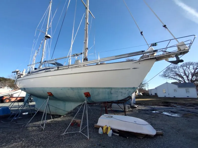 Purchased in 2007 by the current owner, this HR41 has made several Atlantic crossings and has seen many updates over the years including a repower in 2007 with a fresh water cooled Yanmar diesel, Victron electrical components, new generator in 2023, brand new water heater and stove in 2024, plus more. A custom filler makes the aft double berth into a large single for extra comfort, new cushions were made for the cockpit and berths in 2020, and new window dressings were added. Her sail inventory includes 2011 headsail, 2017 main and mizzen, a staysail, and an older spinnaker. Surveyed on the hard prior to being imported into the U.S., the report is available for reference. Come see this rare opportunity here in Virginia before someone else takes advantage!