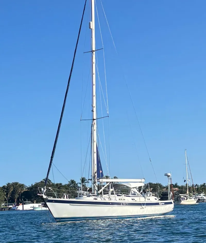 CYGNUS is a well outfitted and maintained cruising yacht. She boasts New Elvstrom sails, New standing rigging, New Watermaker (37 GPH), New Lithium Batteries and so much more! Her two stateroom layout includes comfortable easy chairs opposite the main salon table and a queen sized berth aft with sofa. CYGNUS is ready to take her owners to any corner of the world's oceans in safety and comfort.