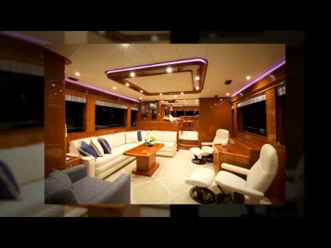 The main deck is Open from the aft deck through the salon and forward to the galley, bar and dining areas with generous headroom. Design Elements combine tasteful and durable custom carpets, fabrics, furnishings and decor throughout. Complementing the luxurious interior is stunning gloss finished Makore Cherry cabinetry, doors and wall panels, Granite counters and floors in the galley and bar areas, Marble counters and floors in all heads along with matching hardware for light fixtures, doors, cabinets and drawers.