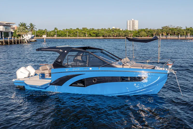 Below deck, you'll find a thoughtfully designed cabin with two full berths, a stylish galley, and a full dry head. Comfortably sleeping up to five people, the 347 lets you enjoy multiple days on the water without rushing back to shore.