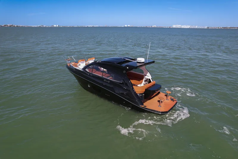 Below deck, the cabin comfortably sleeps up to five and feels surprisingly spacious for a 35-footer, featuring a well appointed galley and a full head.