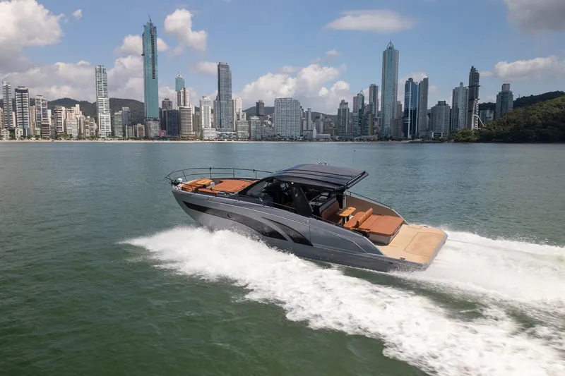 You've got tons of storage, a great grill setup for easy entertaining, space to keep your drinks ice cold, and powerful AC to stay cool on those hot days. When you want performance, the triple-engine setup delivers serious power. Below deck, you'll find three berths, a full dry head, and luxury details everywhere for comfortable overnight stays.