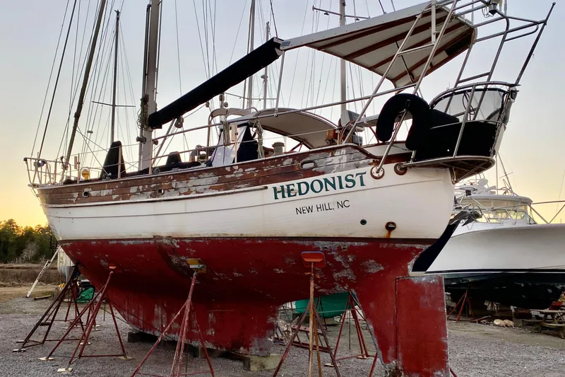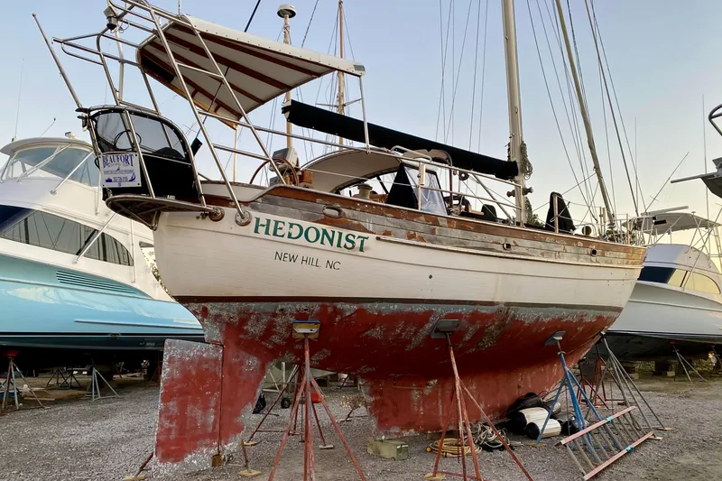 Offered for sale in Beaufort, North Carolina, this 1991 Hans Christian 41 Molokai is a rare opportunity to own a true bluewater classic with exceptional pedigree. The boat is currently hauled out and is best described as a light to moderate project, ideal for a knowledgeable owner looking to finish and personalize a proven offshore design.