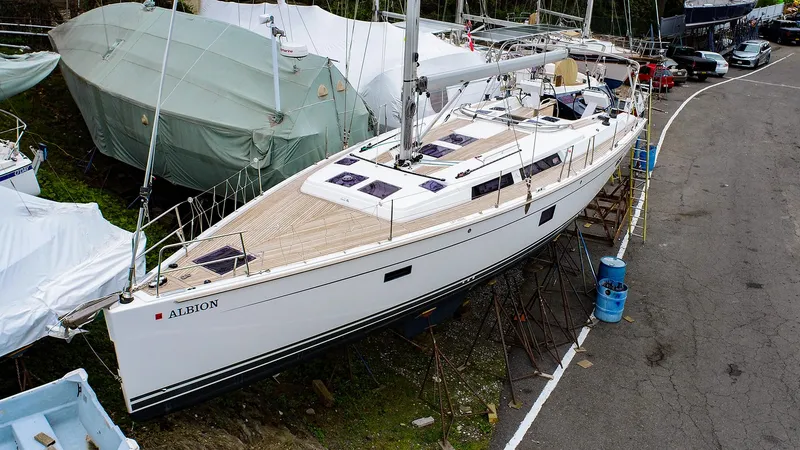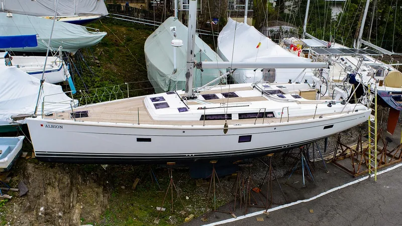 2 Lewmar 50 ST EVO manual secondary winches, Elvstrom FCL tri-radial cut performance full-batten main & self tacking jib, Dyneema main & jib halyards, car slide system for the main, gennaker gear package (incl. 2 sheets, 2 blocks, halyard & gennaker ring), Volvo D3-75, 53kW/72hp saildrive, 3-blade folding prop