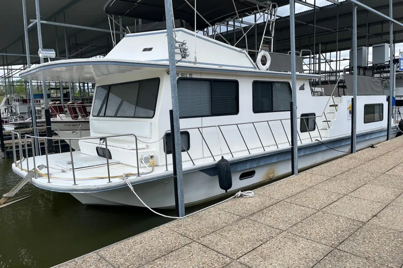 Introducing "The Happy Duck," a charming 1995 WaveLength Wide Body houseboat that offers a delightful escape on the water. With an impressive overall length of 52 feet, this vessel is designed for comfort and enjoyment. The hull is crafted from durable fiberglass, ensuring a smooth and stable ride. Powered by twin Crusader Fuel Injection 454XL inboard engines, each delivering 454 horsepower, this boat promises reliable performance with a total of 1,008 horsepower. With only 610 and 614 hours of use, these engines are ready for your next adventure. "The Happy Duck" is equipped with essential features for a pleasant experience, making it an ideal choice for leisurely cruising or entertaining guests. Embrace the joy of life on the water with this well-maintained houseboat, perfect for creating lasting memories with family and friends.
