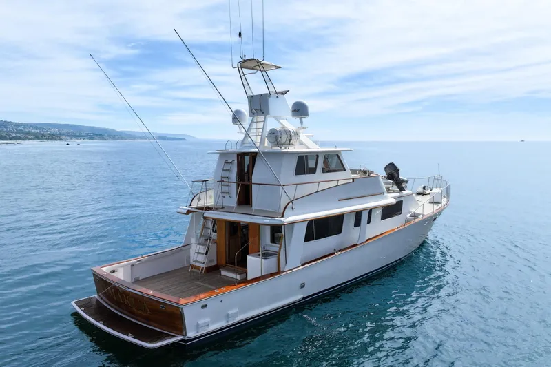 Come aboard this beautiful 66' Hargrave built at Miami Boat Works. She has enjoyed a 3 year refit at Newport Harbor Ship Yard consisting of a complete mechanical Cummins repower, new fuel tanks, new Onan generators, complete electrical rewire with custom Common Ground AC/DC distribution panel, all new plumbing, custom teak rails, custom fiberglass bulwarks, all new interior galley, all new heads, and new headliners throughout. Following this refit she went to Phil Brooks Boat Yard in Sidney, BC for additional upgrades, electronics suite, day head in pilot house, new Steelhead Davit, and fiberglass headliners.
