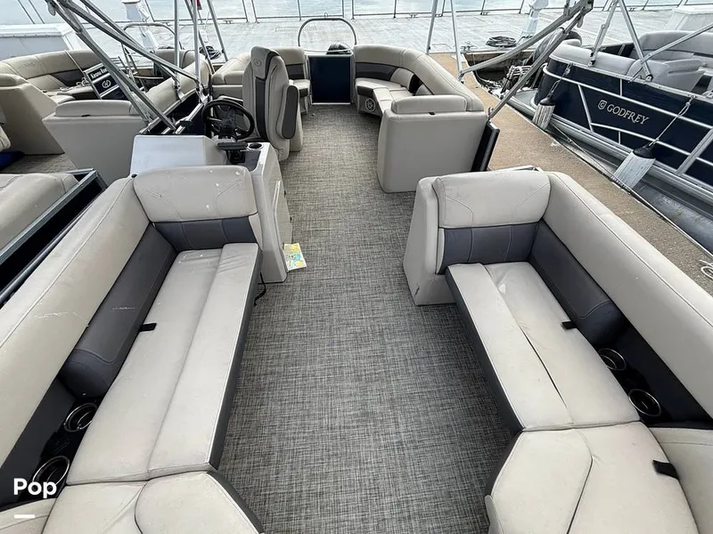 This Harris Tritoon Cruiser 230 has a comfortable layout with plenty of room for everyone to relax and enjoy a family fun day on the water!