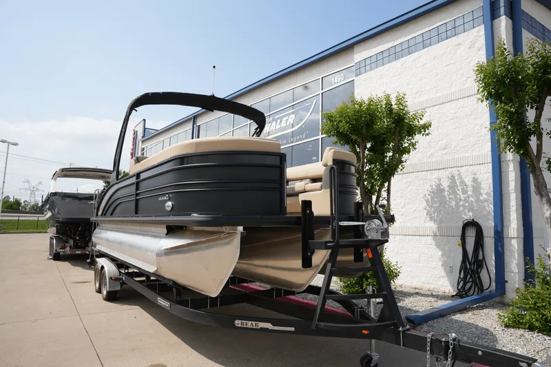 Powering this luxurious pontoon is a 225L 4S DTS/PAS (V6) primary outboard engine, installed and ready for adventure. The boat is built with three 25-inch tubes and offers ample in-floor storage. For ultimate comfort and convenience, it includes a forward electric power top shade, a Halo Power 10-foot black bimini, Tech Package 2, and a Convenience Package that comes with 8.8-inch diameter fenders.