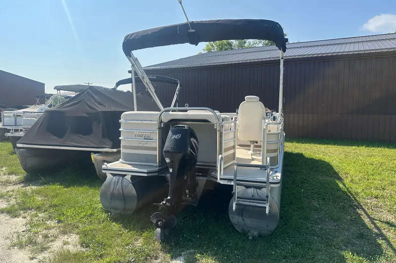 2005 Harris Classic 260 powered by a Mercury 60hp EFI 4 stroke engine with 415 hours. Options and Features of this pontoon include Deck mounted fiberglass Nav and Docking light pods, Tilt steering wheel, Lux reclining high back captains chair with swivel/slider base, Radio with 4 speakers, Lowrance dash mounted fish finder, trim gauge, molded cupholder and storage cubbies on seat ends, rotomolded seat bases, Rear boarding ladder, stainless steel ski tow bar, Bimini top and a mooring cover.